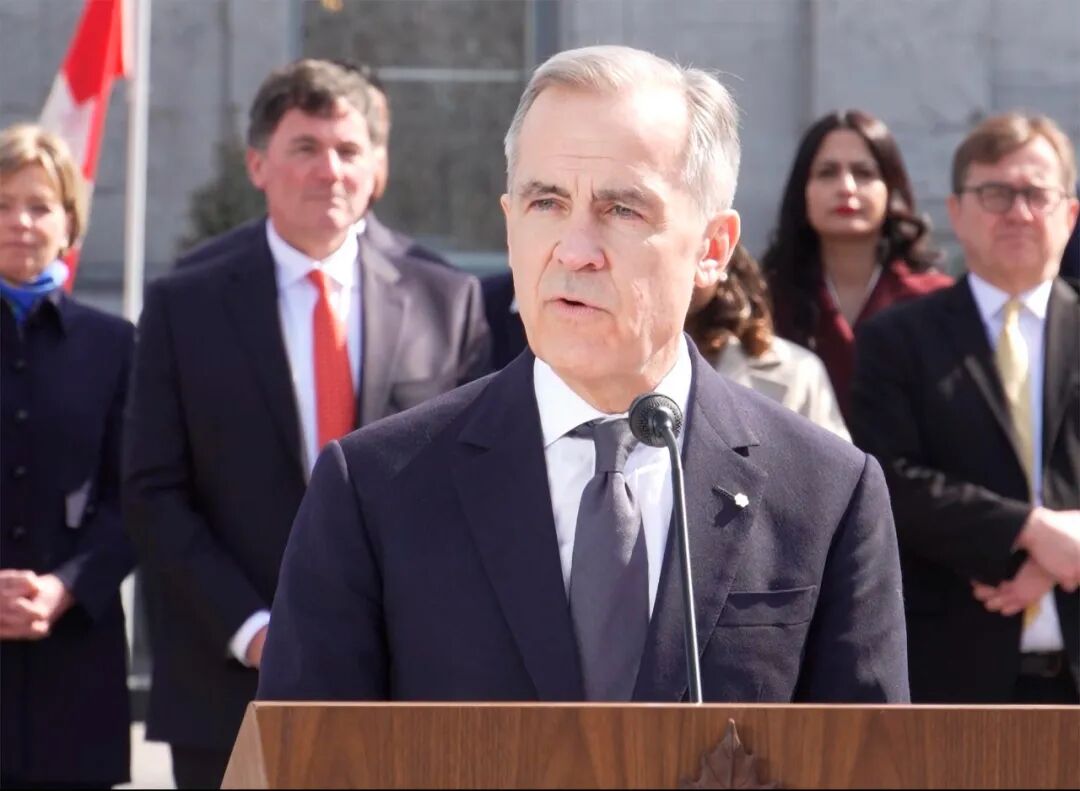 3月14日,在加拿大渥太华,马克·卡尼在宣誓就职仪式后向媒体发表讲话(视频截图)。新华社发(米克·格佐夫斯基摄)